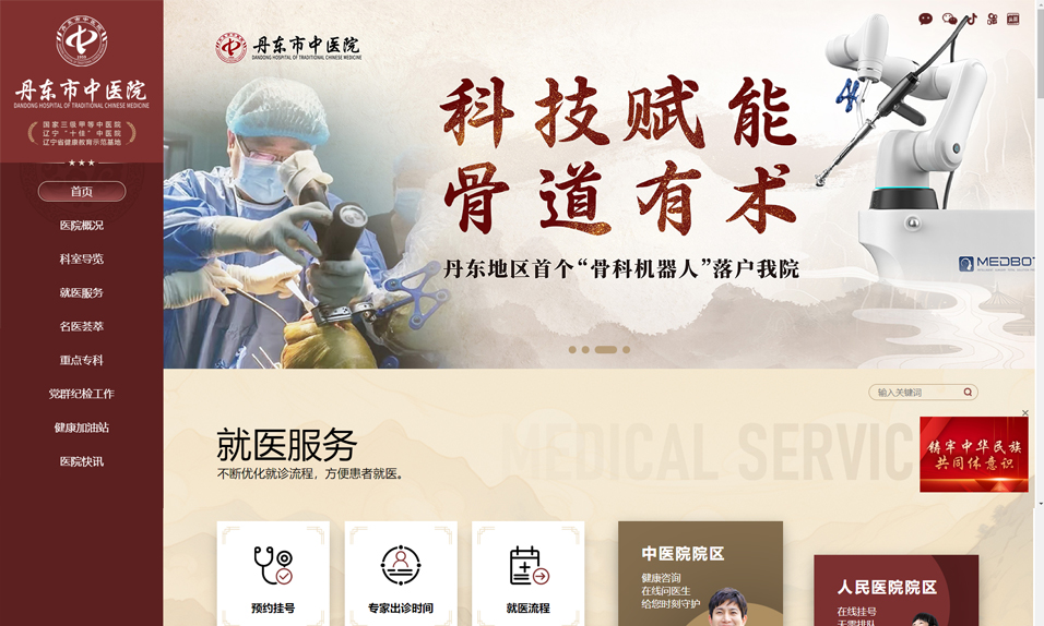 丹東市中醫(yī)院始建于1959年,目前編制床位1100張,職工1200余人,系一所集醫(yī)療、教學(xué)、科研、保健、康復(fù)于一體的國(guó)家三級(jí)甲等中醫(yī)綜合性醫(yī)院。根據(jù)2023年5月26日市委編委批復(fù),丹東市中醫(yī)院(丹東市骨科醫(yī)院、丹東市中醫(yī)研究所)和丹東市人民醫(yī)院整合,重新組建丹東市中醫(yī)院,加掛丹東市人民醫(yī)院、丹東市骨科醫(yī)院、丹東市中醫(yī)研究所牌子。